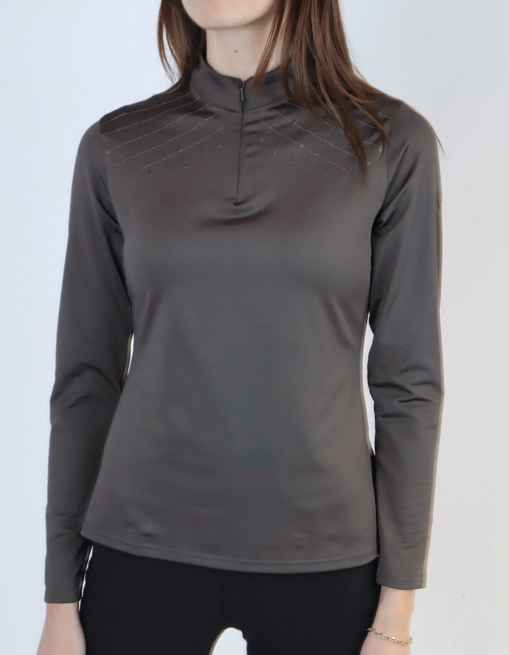 Conoce la camisa Hilma: tu compañero de equitación de manga larga esencial. Hecho a mano tanto para la función como para el estilo, esta camiseta cuenta con detalles de cristal tono sobre tono en los hombros y un elegante logotipo de Montar de silicona en el brazo. Eleva tu atuendo ecuestre con la combinación perfecta de rendimiento y elegancia que la camisa Hilma aporta a cada paseo.