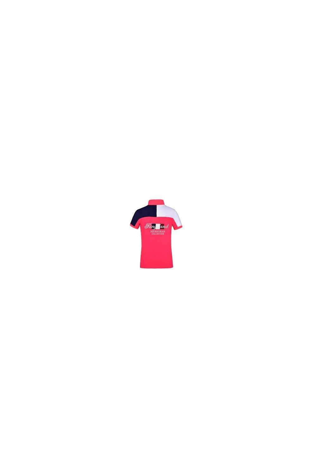Polo técnico unisex junior. El polo es de manga corta y transpirable. Es de color azul marino con la parte superior en blanco y burdeos y el logo bordado en el lado izquierdo a la altura del pecho.