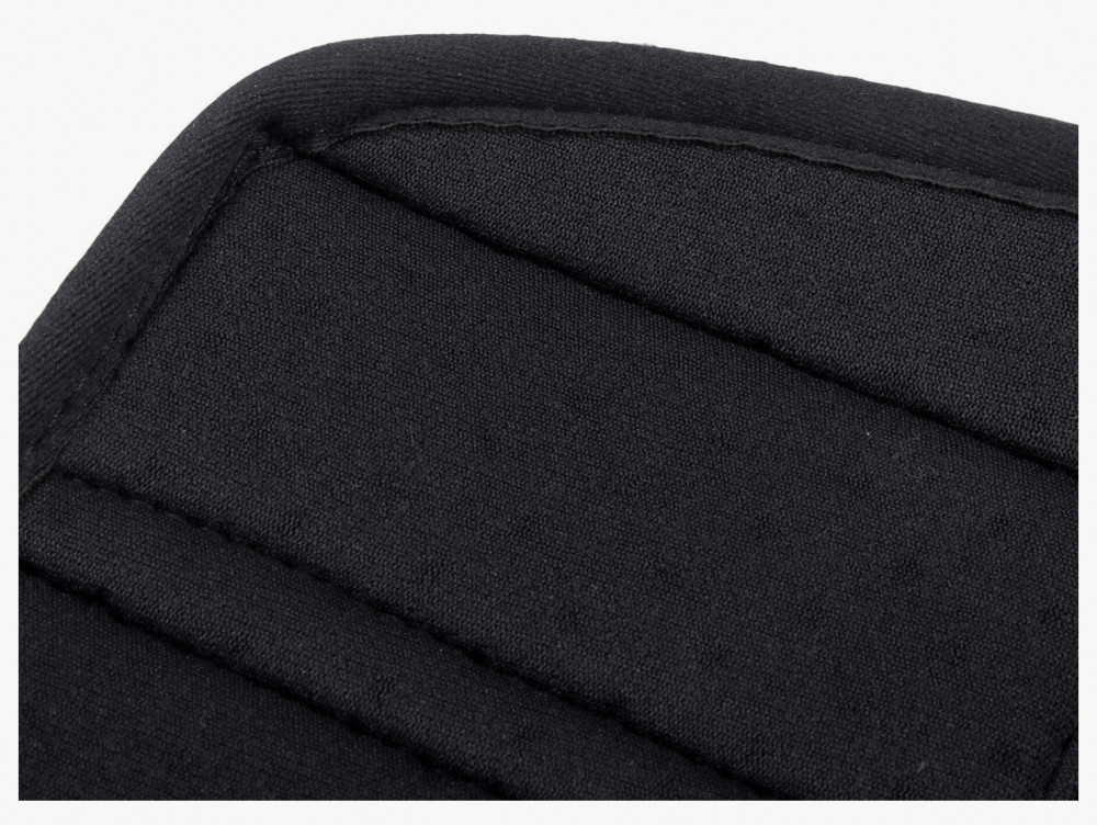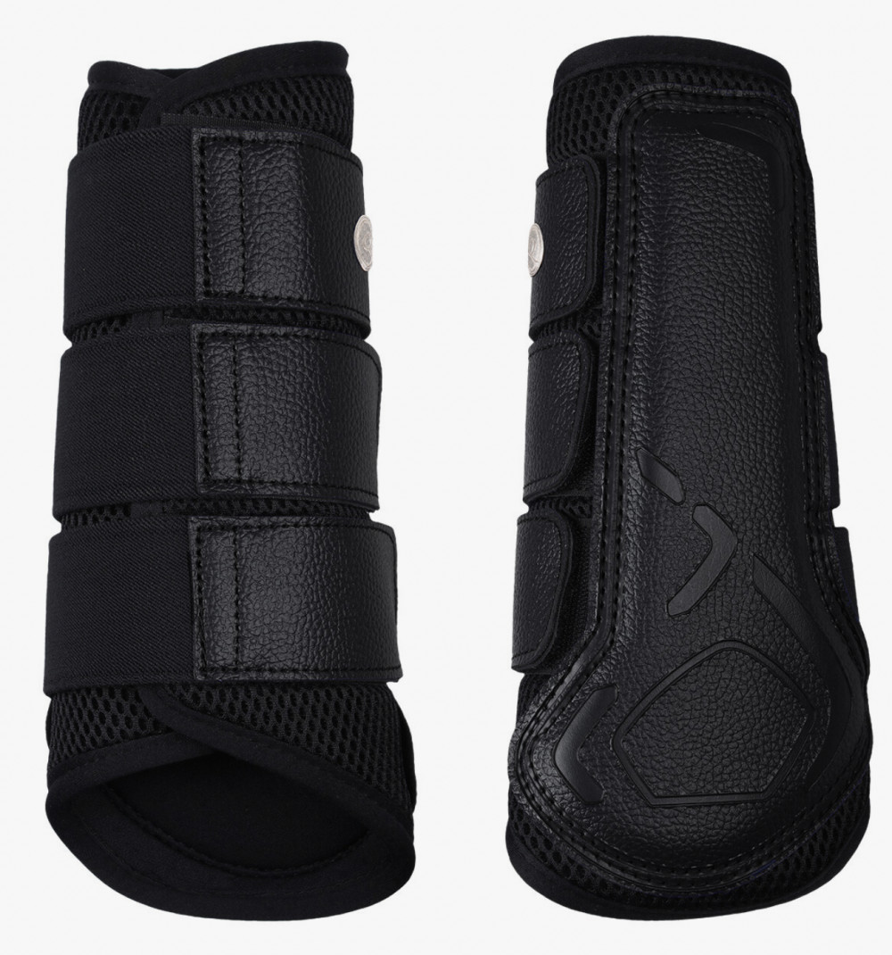 Estos protectores son geniales para el trabajo de dia a dia. El forro especial de neopreno con espacio de aire permite disipar el calor y la humedad. Los protectores son fáciles de colocar con los cierres de velcro. El pin 'Q' de color dorado le da a los protectores un toque elegante.