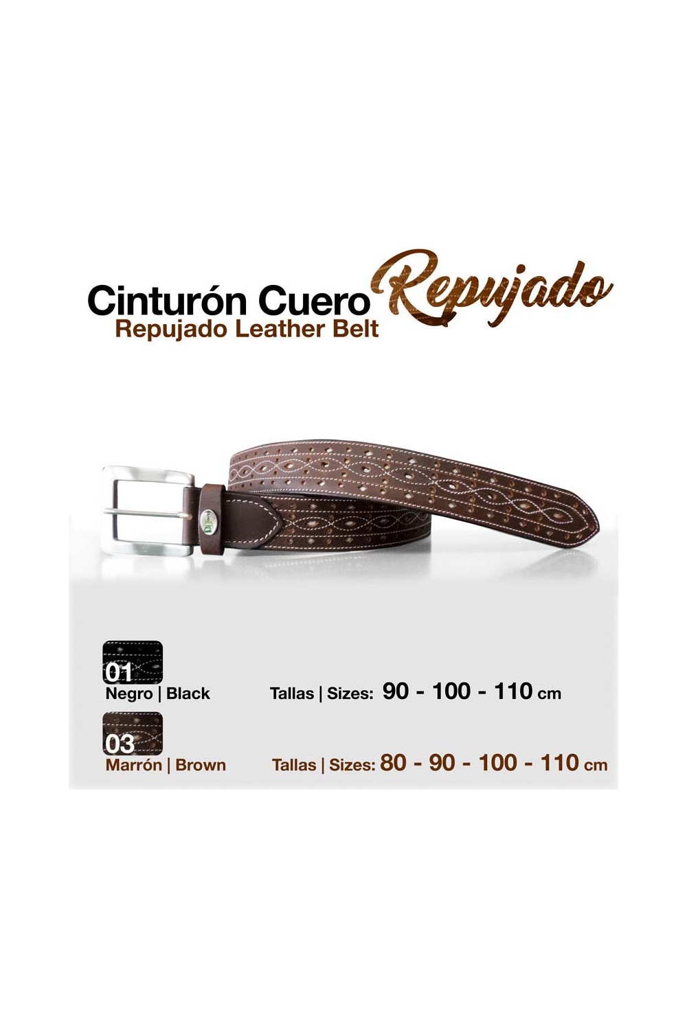 Original cinturón fabricado en cuero de alta calidad en color marrón y pespunteado con hilo blanco.