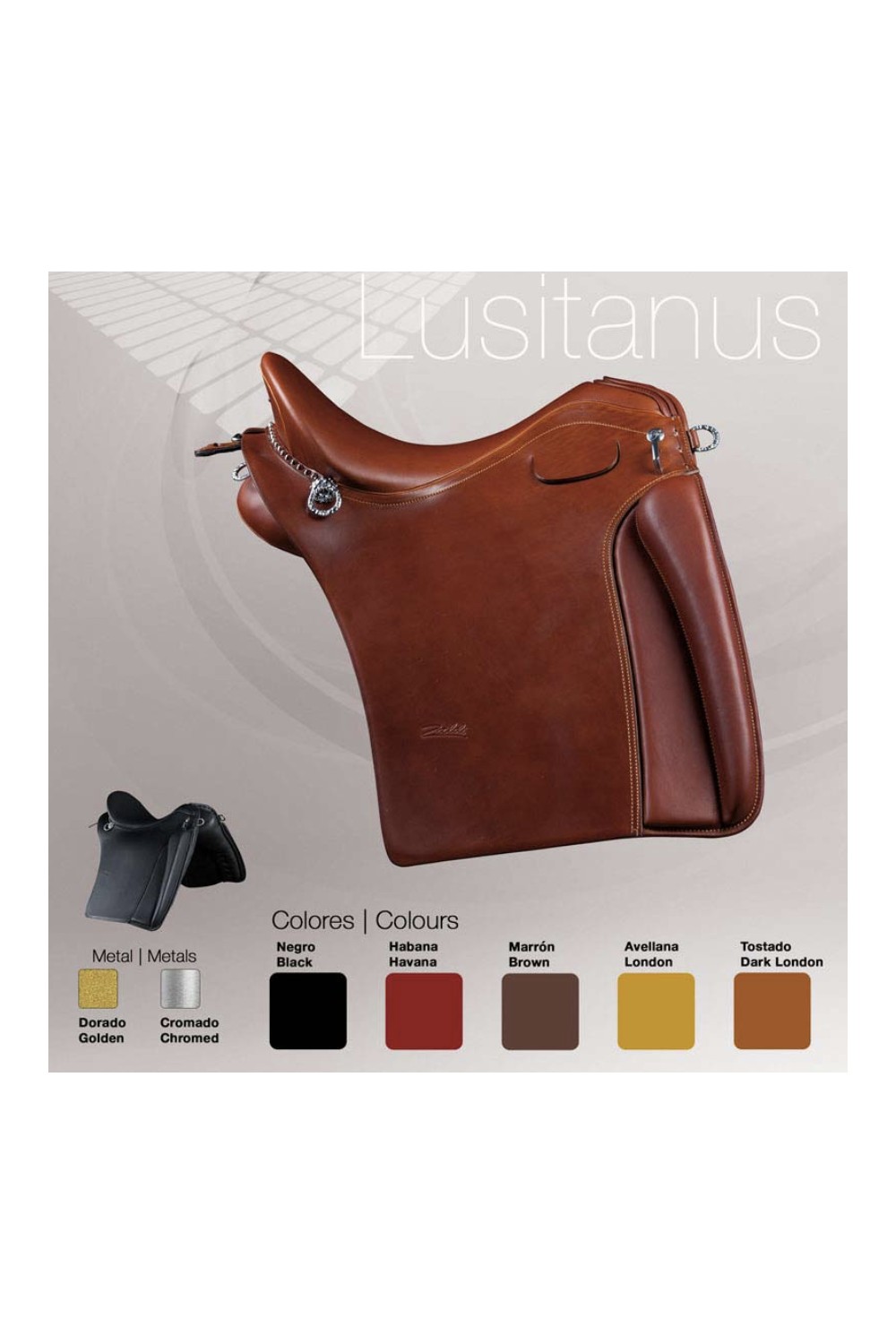Reúne cualidades que marcan la diferencia en las sillas de Doma Portuguesa. Realizada en una nueva piel europea natural, más resistente y flexible. Armadura flexible y diseño ergonómico semi-plano. Libertad de movimiento y contacto con el caballo. El jinete encuentra en esta silla la expresión de sí mismo. Grandes jinetes y profesionales de Portugal y de todo el mundo apuestan por ella.