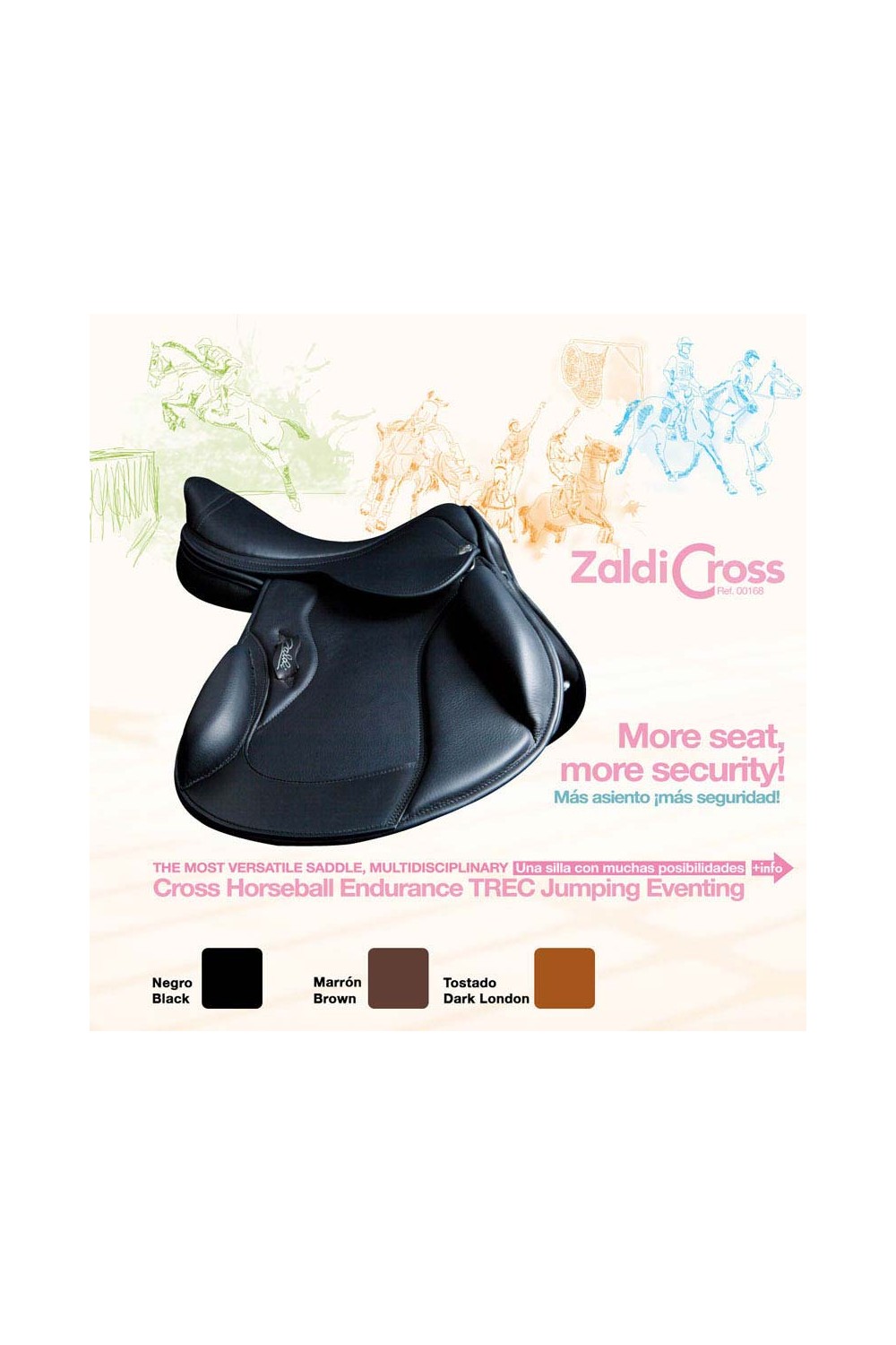 Presentamos esta nueva silla con muchas posibilidades. Muy versátil, adecuada para múltiples disciplinas como cross, horseball, raid, marcha, completo, TREC y salto.