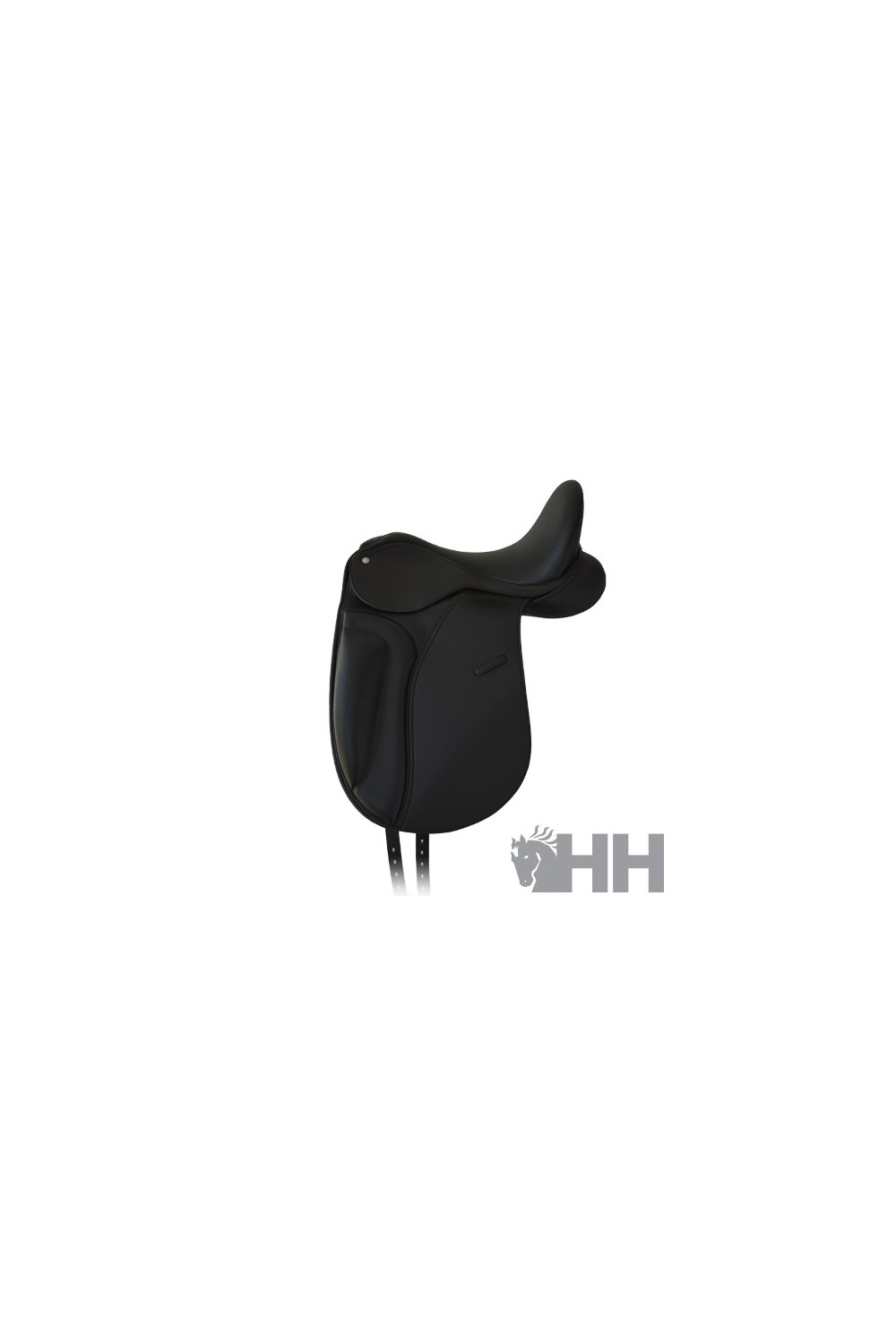 Silla de doma clásica realizada complétamente en material sintético muy resistente y de fácil mantenimiento.
