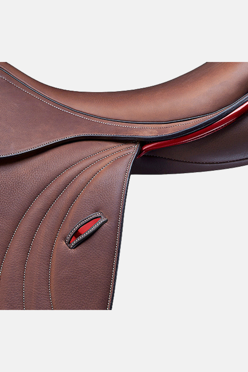 El asiento es semi plano y los bastes están realizos con al tecnología AMS para un perfecto ajuste al dorso del caballo.