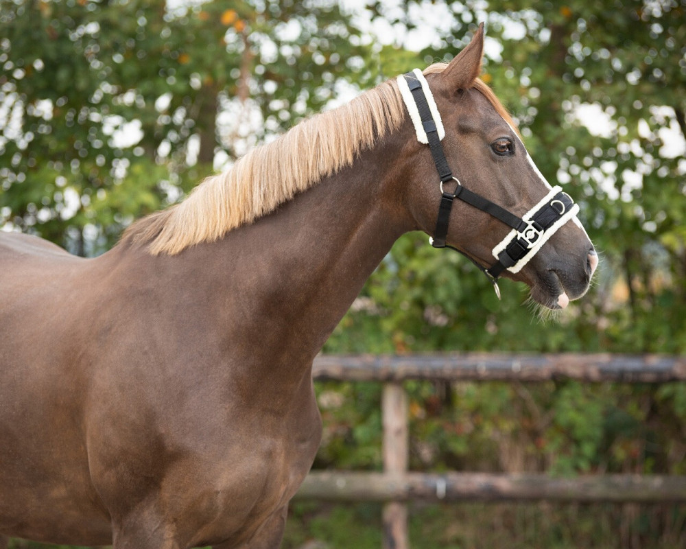 Cabezada para uso de dar cuerda. La cabezada Cavesson se compone de tres anillas en forma de D en la parte frontal de la muserola. Totalmente ajustable para el caballo gracias a las hebillas desde tres puntos distintos de la cabezada. Diseñada con borrego en la zona de la testera y muserola. Dispone una anilla en la correa de la barbilla para su agarre.